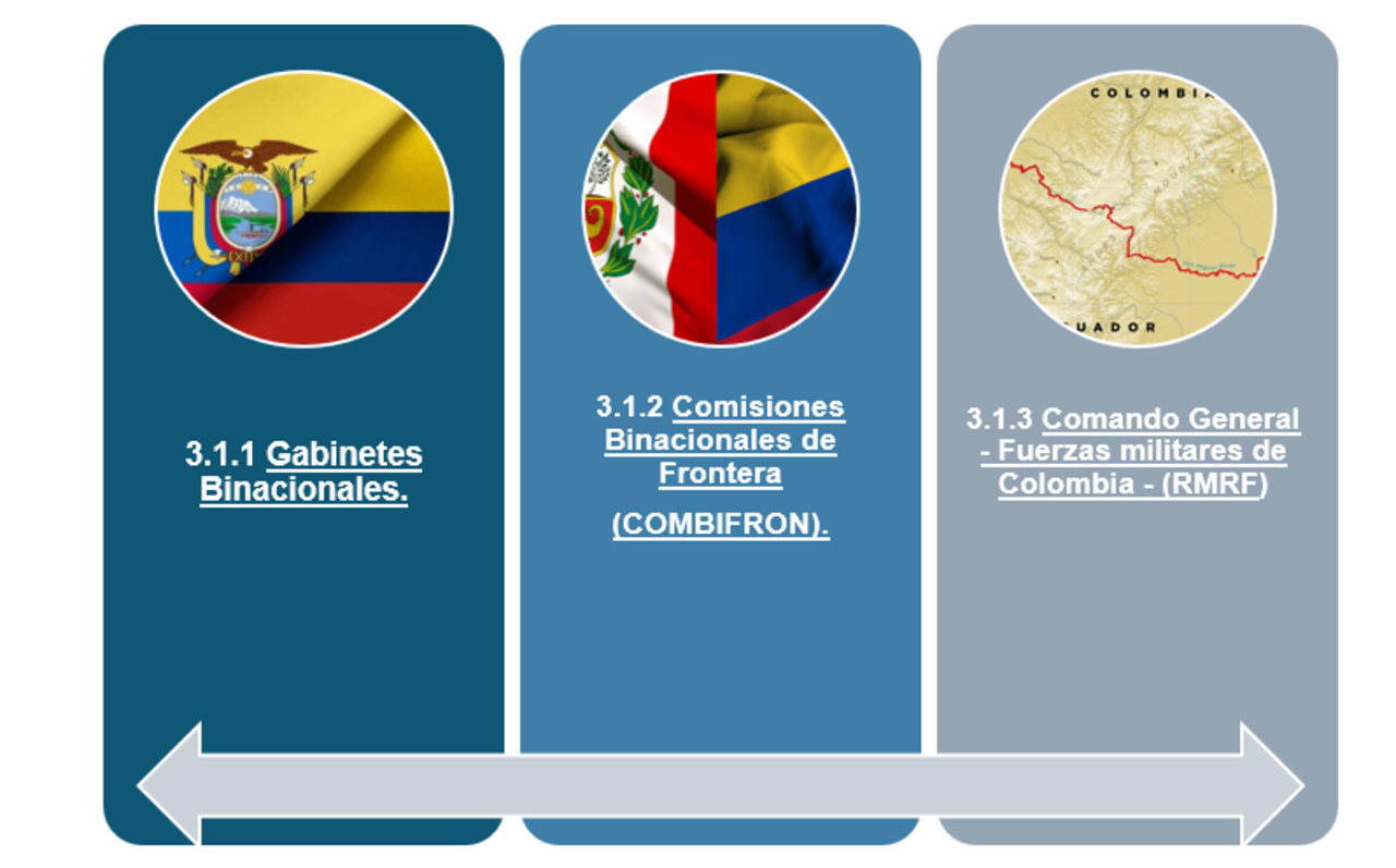 Comisión Binacional de Frontera (COMBIFRON) con Panamá, Ecuador, Perú, República Dominicana y Brasil con un nivel estratégico militar.