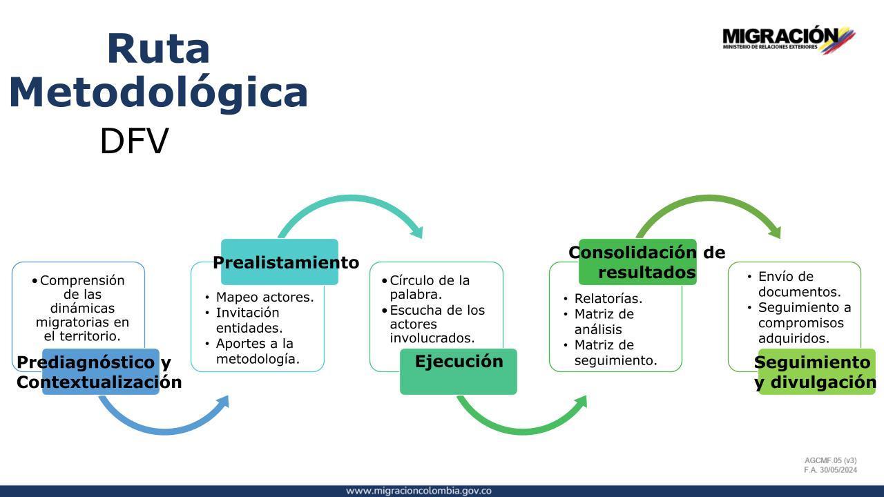 Se ha logrado el despliegue de los DFV en distintos territorios clave, desde La Guajira hasta Nariño, incluyendo zonas de frontera como Tibú en Norte de Santander, Arauca, Cubará en Boyacá, Acandí en Chocó e Inírida en Guainía. Asimismo, ha alcanzado municipios receptores como Necoclí en Antioquia y Tumaco, además de centros urbanos principales como Bogotá y Cali, consolidando acciones que aborda las realidades migratorias en múltiples contextos geográficos y sociales.